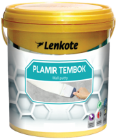- Apabila pada permukaan dinding terdapat lubang kecil atau retak rambut harap dilapiskan terlebih dahulu dengan Lenkote Plamir Tembok Wall Putty.