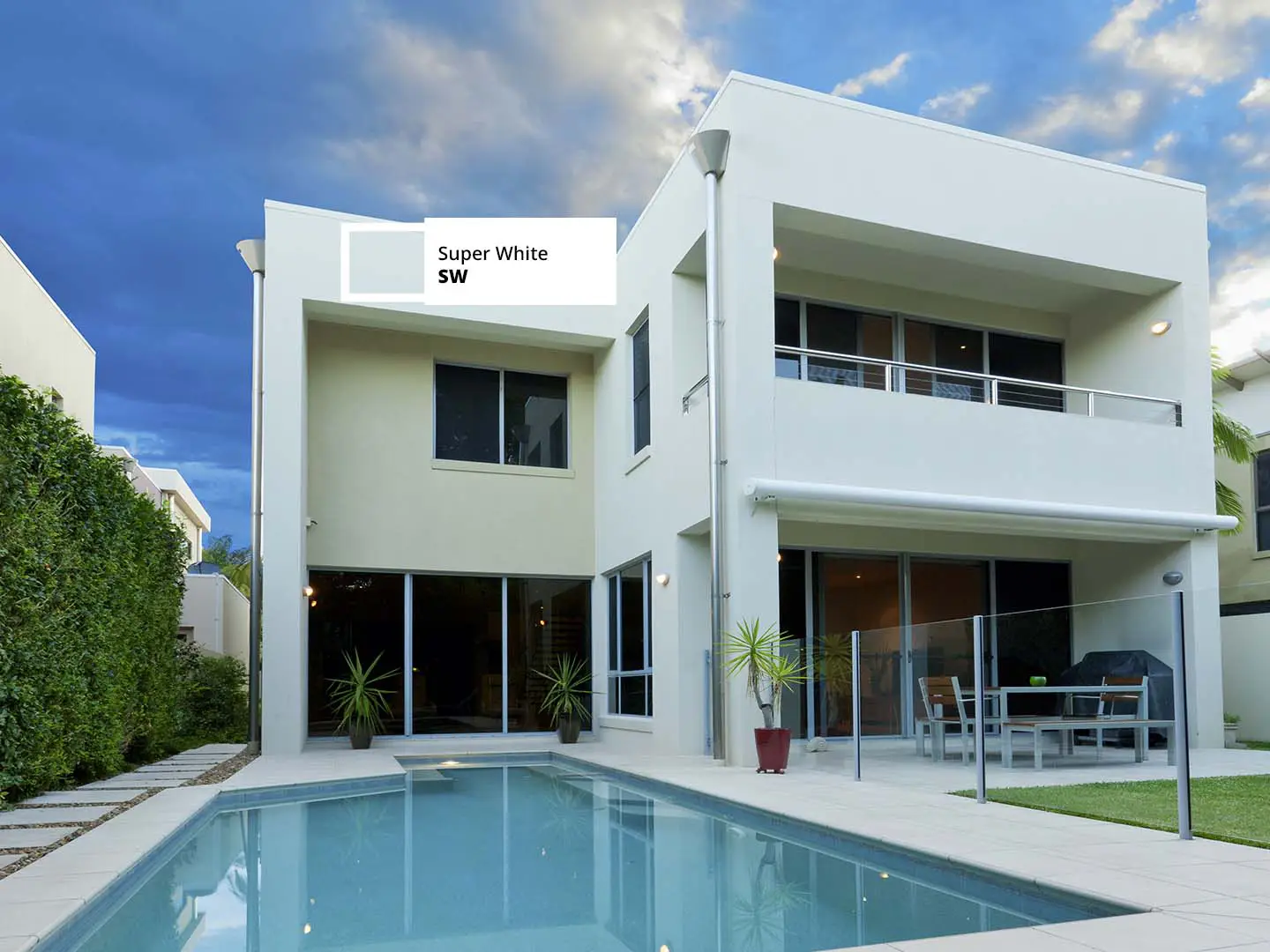 Warna netral seperti putih, abu-abu, dan krem menjadi pilihan utama untuk eksterior rumah minimalis. Warna ini memberikan kesan bersih, luas, dan modern. Untuk perlindungan ekstra terhadap cuaca, gunakan cat dinding eksterior premium Sunguard All-In-One dari Avian Brands. Cat ini tidak hanya memberikan hasil akhir yang sempurna, tetapi juga melindungi permukaan dari paparan sinar UV dan perubahan cuaca ekstrem.
