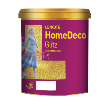 Cat spesial efek HomeDeco Glitz adalah cat akrilik dekoratif berbahan dasar air dengan tekstur glitter. Tersedia dalam dua pilihan warna yaitu gold dan silver, membuat kamar anak terlihat mewah dan berkilau.