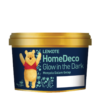 HomeDeco Glow in the Dark adalah cat phosphorescence yang berbahan dasar air ini dapat menyala dan berpendar dalam keadaan gelap sehingga suasana tidur di malam hari menjadi menyenangkan ketika lampu dipadamkan. Dilengkapi dengan stensil karakter Disney yang dapat kamu pilih sesuai kesukaan si kecil.