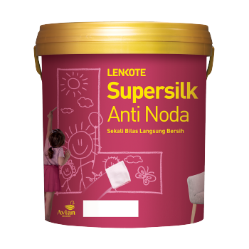 Gunakan Cat Tembok Supersilk Anti NodaUntuk mendapatkan hasil pengecatan yang bagus, cat tembok yang digunakan juga harus berkualitas baik. Gunakan cat tembok premium Supersilk Anti Noda sehingga warna cat tidak mudah pudar dan bila terdapat kotoran juga mudah dibersihkan.