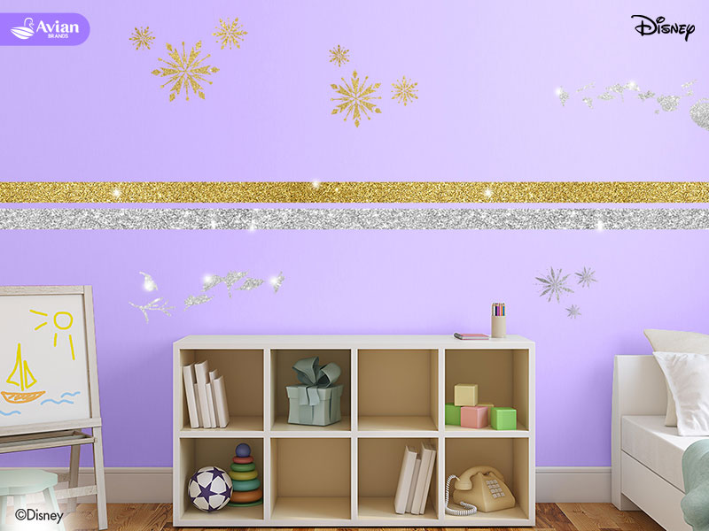 Hadir dalam dua varian, yaitu gold dan silver yang tentunya sangat cocok dipadupadankan dengan warna ungu muda, sehingga kamar anak akan tampil mewah. Untuk efek glitter yang maksimal, Sahabat Avian Brands bisa berikan sorotan lampu pada bidang yang diaplikasikan produk cat spesial efek HomeDeco Glitz ini.