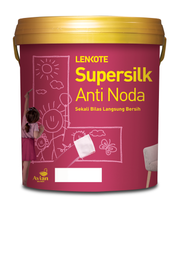 Supersilk Anti Noda juga mudah dibersihkan menggunakan air hanya dalam sekali bilas tanpa merusak permukaan cat. Dengan cat tembok yang mudah dibersihkan, anak pun lebih bebas berkreasi di dalam ruangan. Maka dari itu, pilihlah Cat Tembok Supersilk Anti Noda !