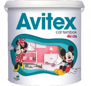 Avitex 4kids Cat Tembok Interior memperindah ruangan bermain dan kamar tidur anak Anda. Avitex 4kids Cat Tembok Interior dilengkapi dengan formula anti bakteri yang dapat melindungi buah hati Anda, ramah lingkungan, dan sangat baik untuk menutupi ketidaksempurnaan permukaan tembok, sehingga tembok terlihat halus dan rata.